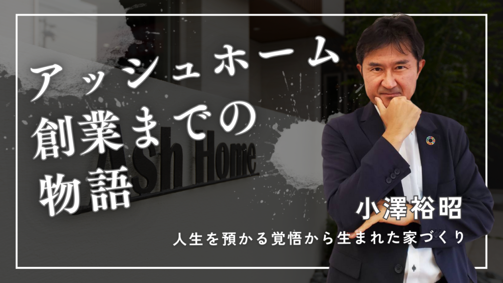 ― 小澤裕昭、アッシュホーム創業までの物語 ― 第一章|原点は「暮らし」と「人」だった(※派手さゼロ)第二章|住宅業界の最前線で知った、リアルとモヤっと感第三章|出世しても消えない「それでいいのか?」という声第四章|独立という決断。きれいごとじゃない理由第五章|アッシュホーム誕生。楽じゃない道を、わざわざ選ぶ最終章|これから家を建てるあなたへ 第一章|原点は…