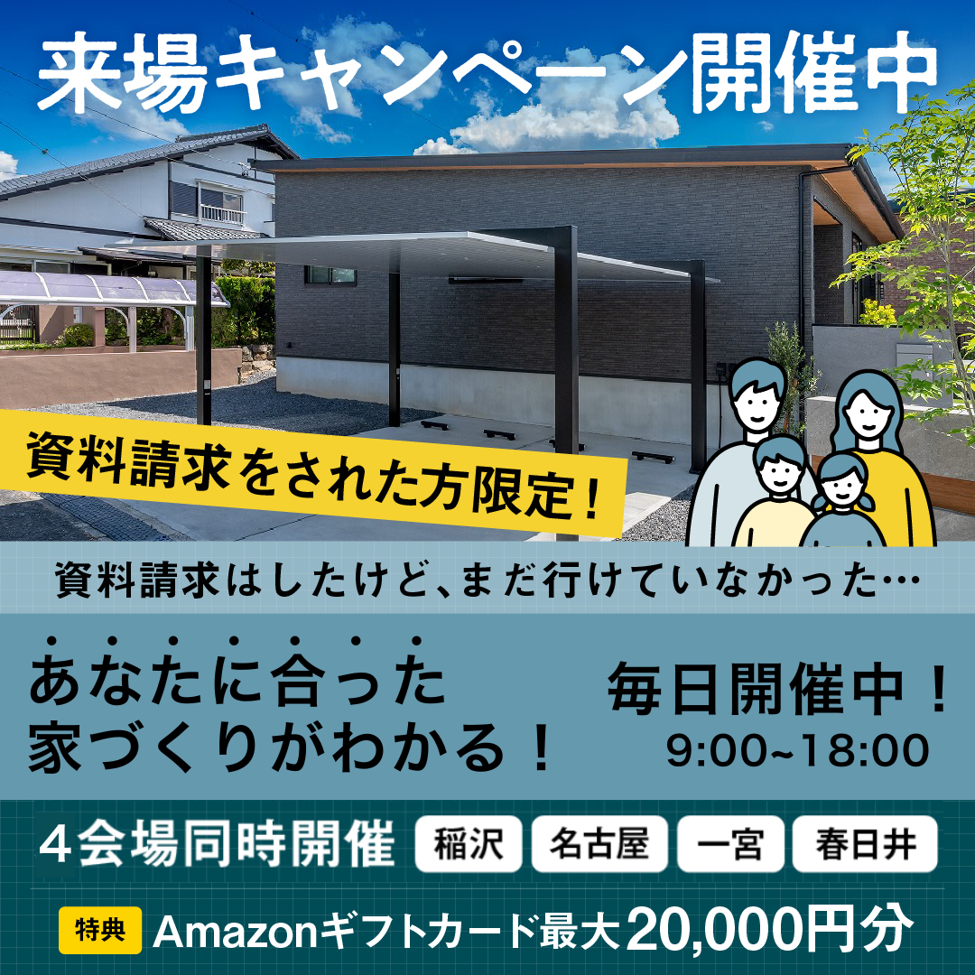下記期間中にモデルハウスや見学会へ来場いただくと