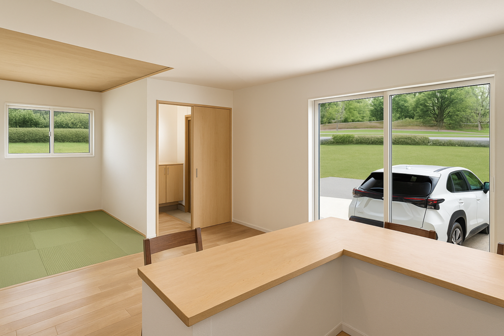 造作カウンター×タタミコーナー×ゆとり収納のある住まい