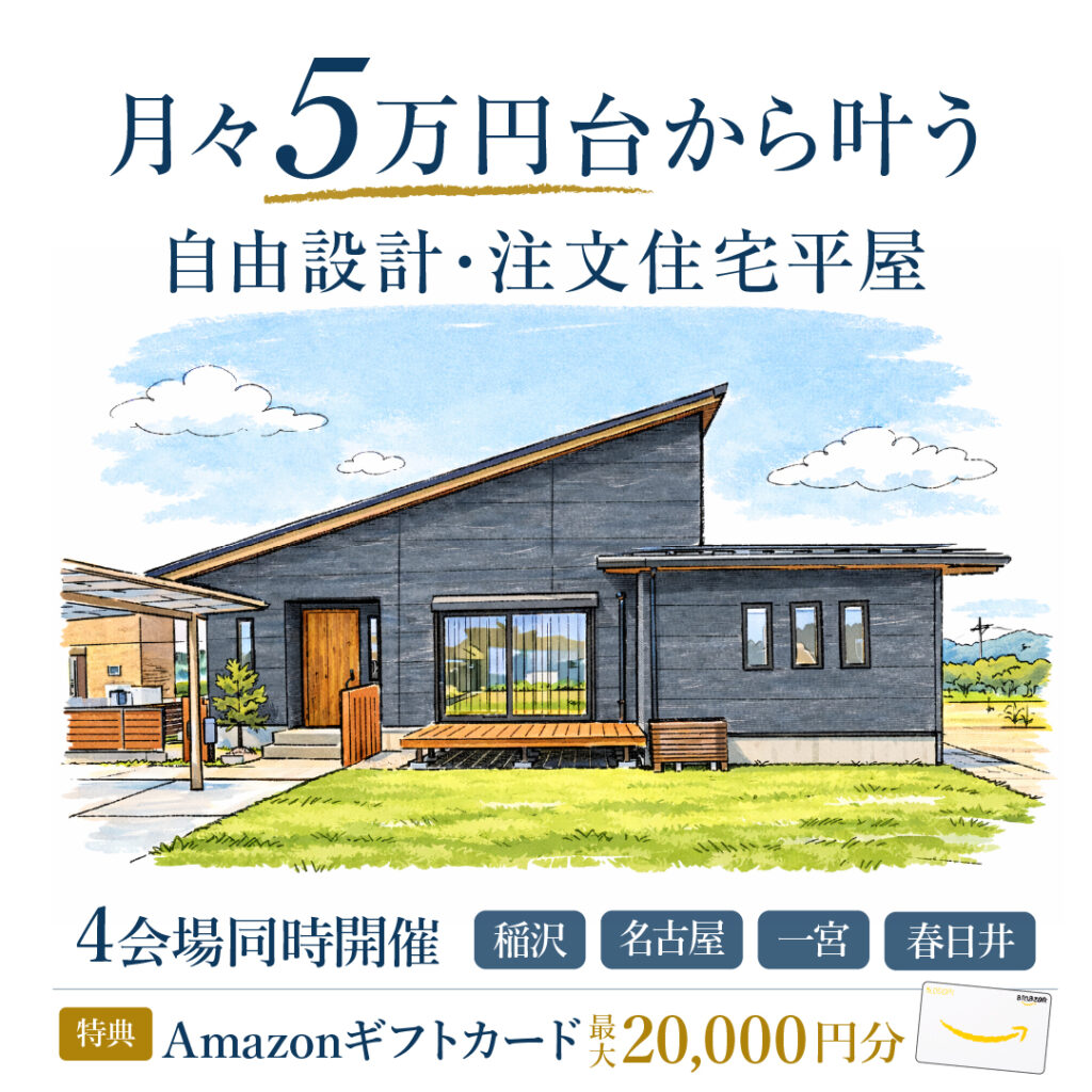 月々5万円台から叶う 自由設計・注文住宅平屋