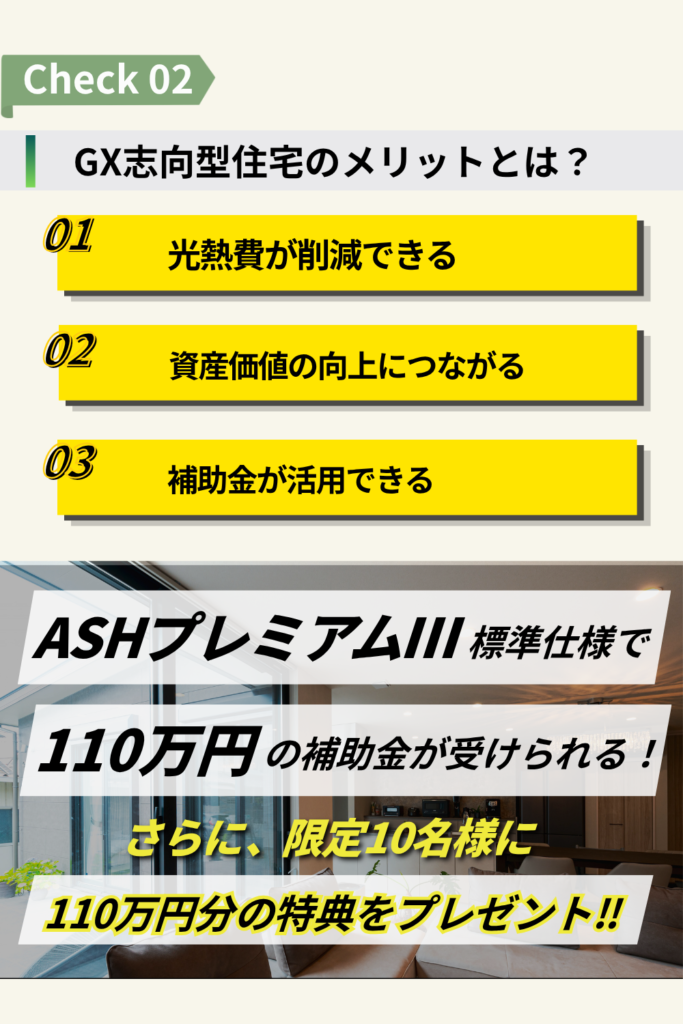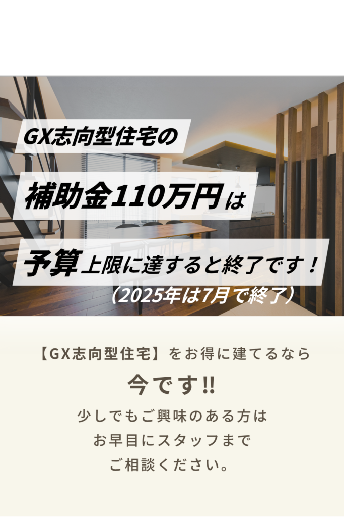 【GX志向型住宅】補助金110万円+特典110万円で賢く家づくり!