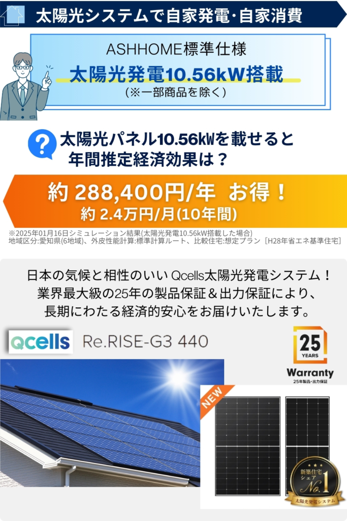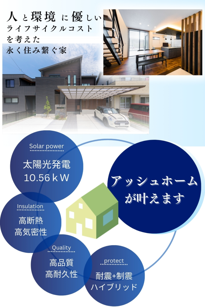 ライフサイクルコストを考えた住まいづくりで、暮らしが変わる!~太陽光発電システム標準搭載~ 2025年6月4日 アッシュホーム情報お知らせ イベント情報はこちら 資料請求はこちら イベント情報はこちら 公式LINEで見学会・お得なイベント情報等配信中!▼友達追加はこちらからも可能です。