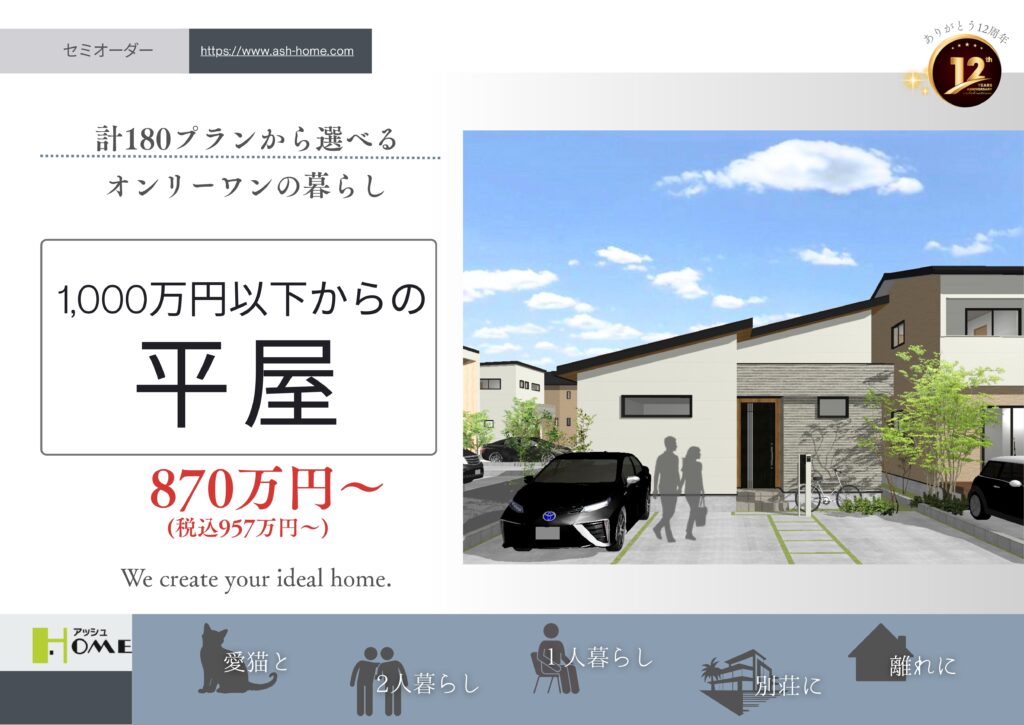 “シンプルに、心地よく、ちょうどいい暮らし”をコンセプトに、人気の規格住宅「1,000万円以下からの平屋」~180通りの間取りプラン~を紹介する一冊。