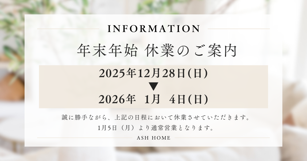 いつも格別のご愛顧を賜り、誠にありがとうございます。誠に勝手ながら、弊社では下記の期間を冬季休業とさせていただきます。期間中は何かとご不便をおかけいたしますが、ご理解のほどよろしくお願い申し上げます。 2025年12月28日(日)▼2026年 1月 4日(日) なお、期間中にいただいたお問い合わせにつきましては、1月5日㈪以降に対応させていただきます。