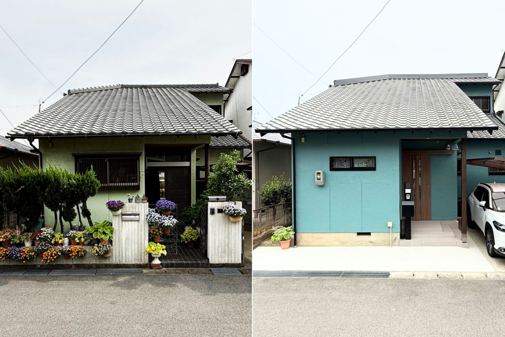 外壁の塗装、塀の撤去、機能門柱を新設し、明るくモダンな印象の外観へと生まれ変わりました。