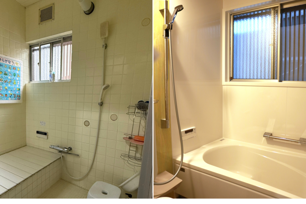 浴槽の配置と、サイズも大きく変更しました。タカラスタンダードのホーローパネルは、毎日のお掃除もラクラクです!