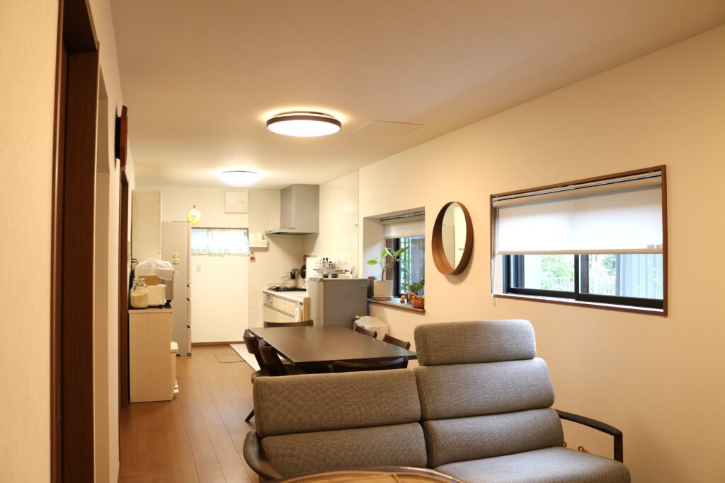 元々和室だった部分を1.5帖増築しリビングに。ソファも置けて家族がくつろげる明るいLDK空間になりました。