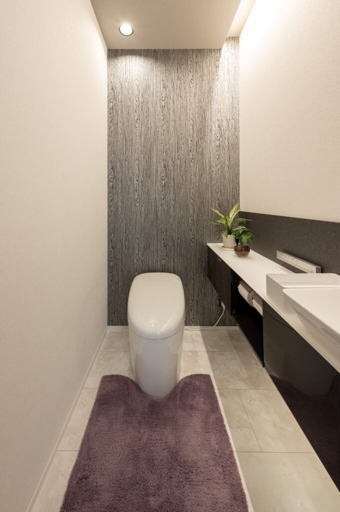 リビングのアクセントにはグレーのエコカラットを採用。上質で落ち着いた雰囲気を演出しています。