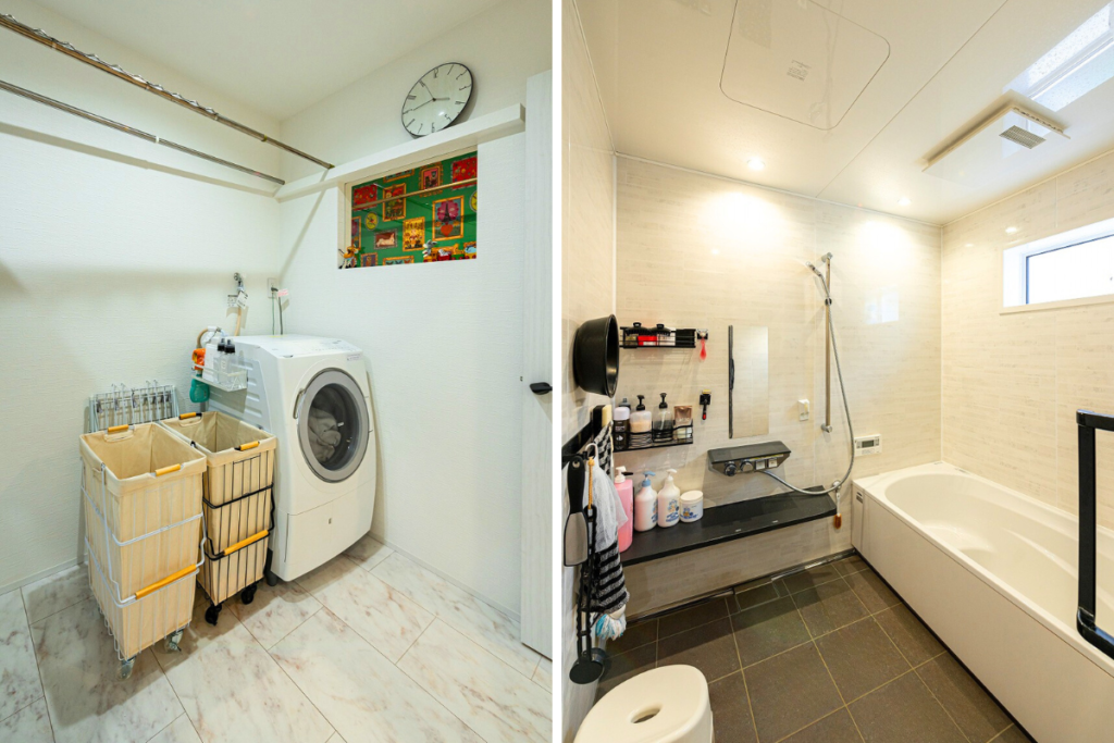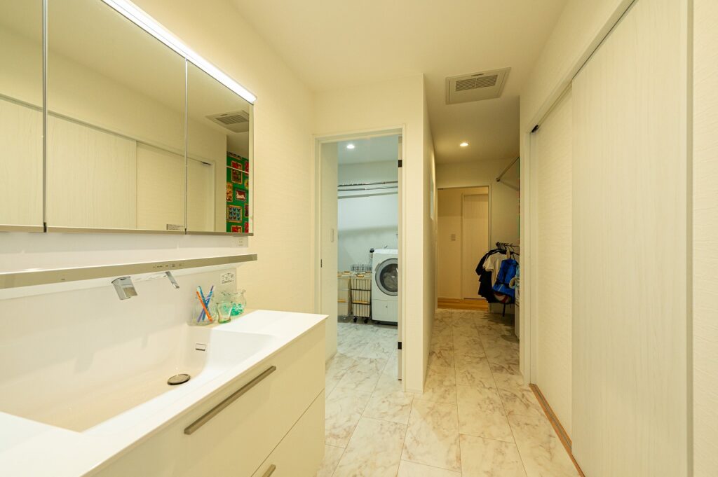 洗面➥ランドリールーム➥脱衣室➥浴室と繋がる家事ラク動線は、帰宅後すぐに手洗➥LDKへスムーズに繋がる快適さが魅力です✨