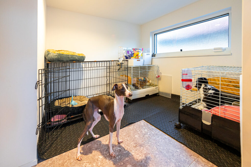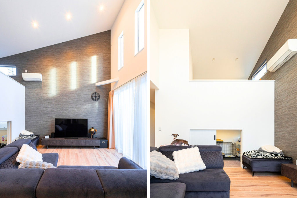リビングから、ワンちゃん&うさちゃんのお部屋が確認できる安心設計!お互いが落ち着ける空間です♪