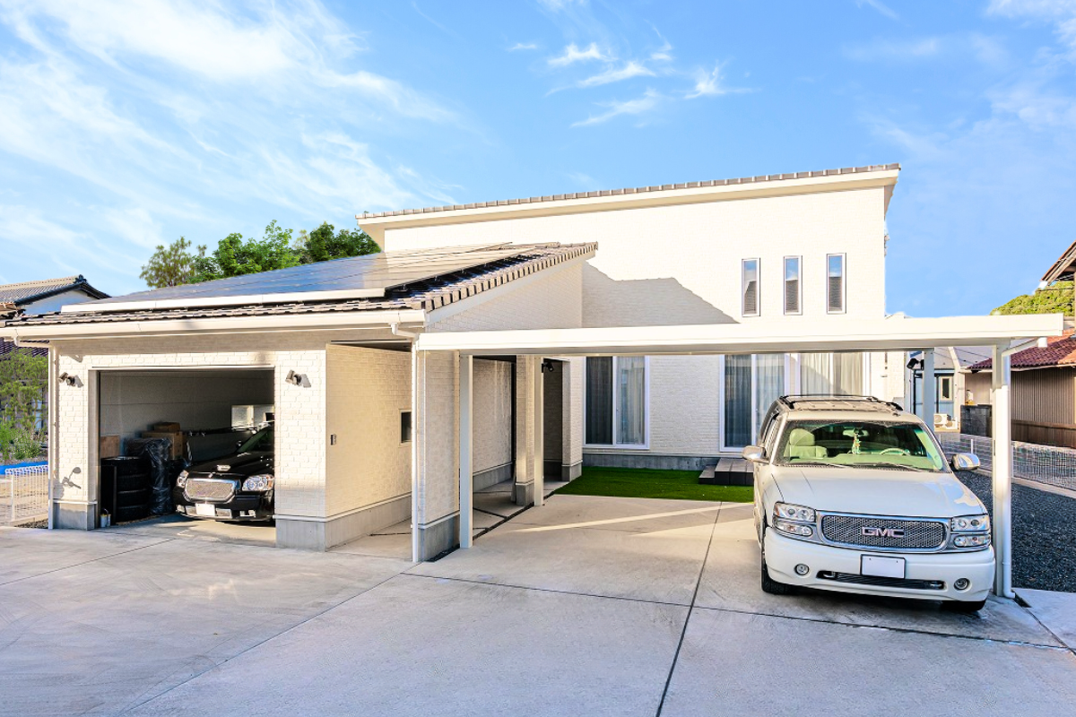 9.96kWの太陽光パネルを搭載した省エネ設計が魅力。広々とした駐車スペースは来客やライフスタイルの変化にも柔軟に対応可能!