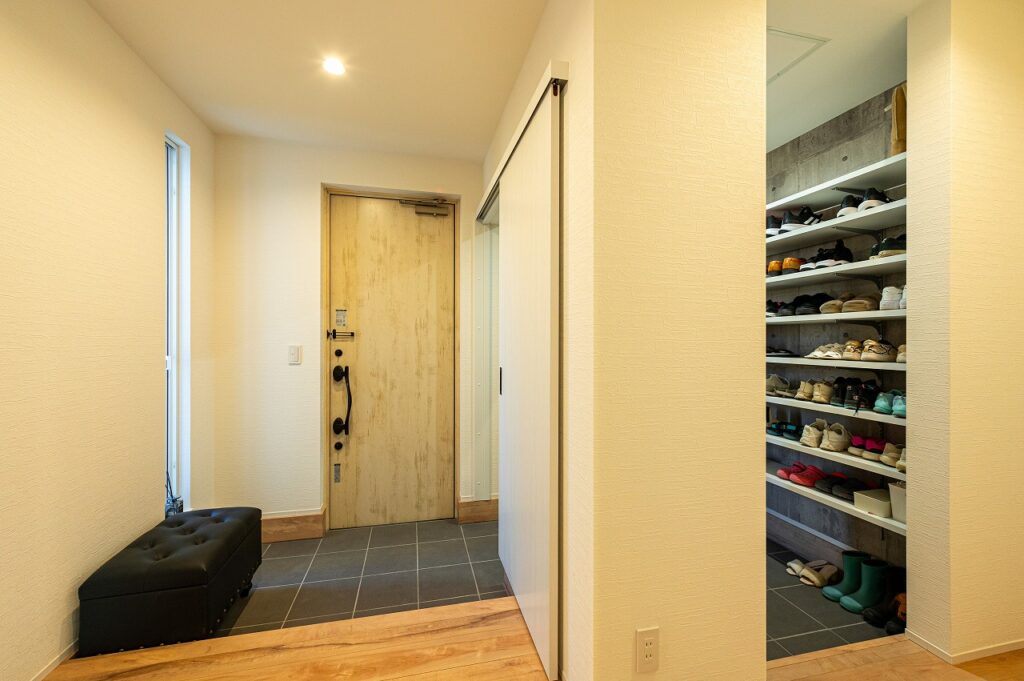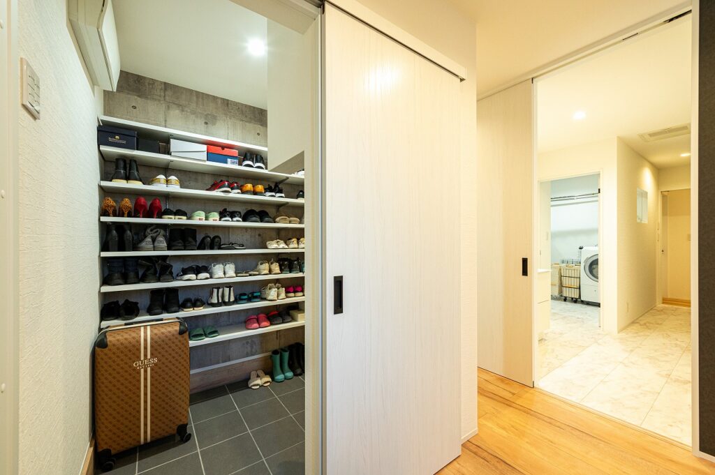 土間収納から直接出入り可能な2way動線で、引戸を閉めれば来客時も気になりません✨