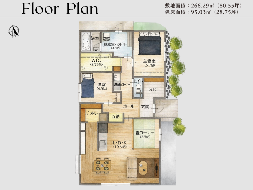 寝室前に3.7帖のWICを配置。ランドリールームからのアクセスもしやすく家事動線も◎