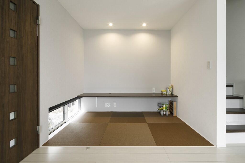 畳コーナーはリビング横にあり、灯り取りの窓からは中庭を眺められて落ち着いた空間。