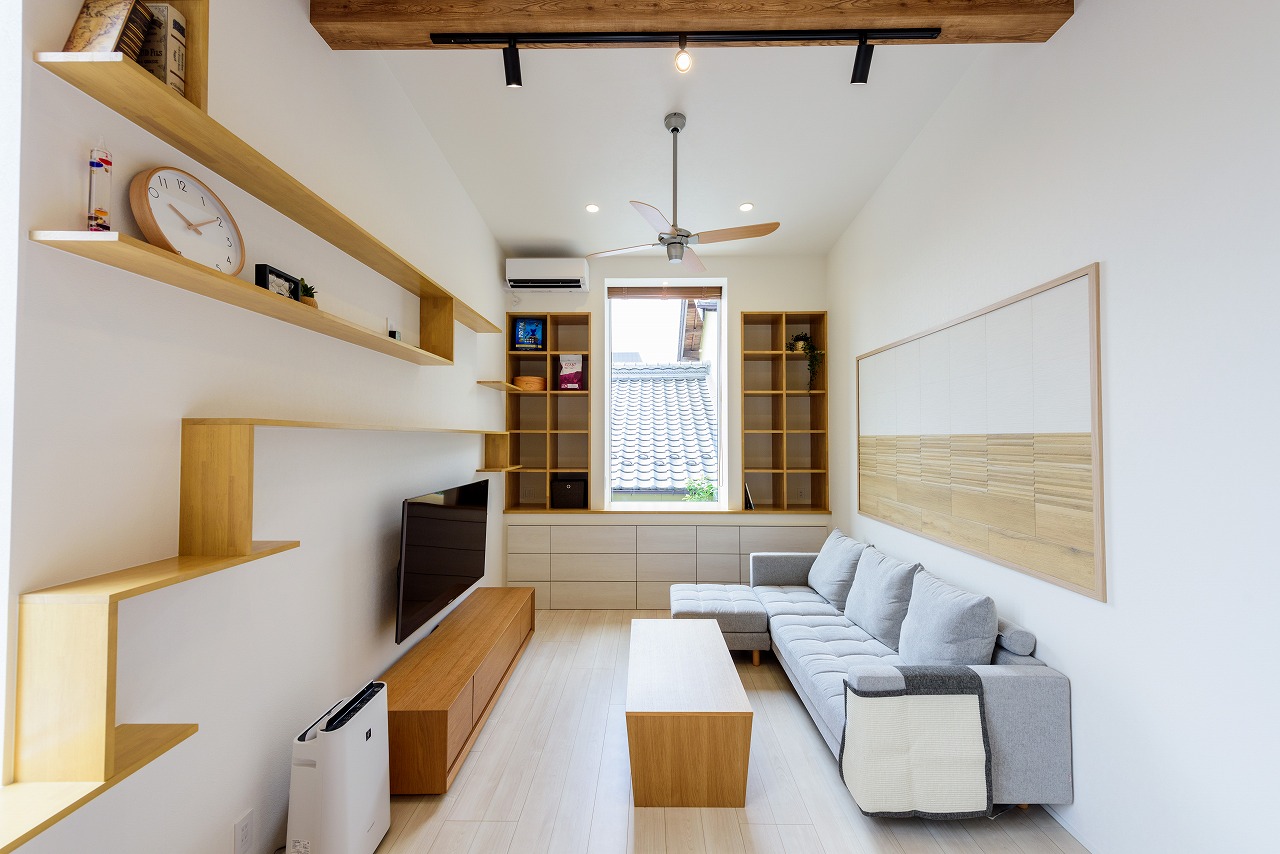 畳コーナーはリビング横にあり、灯り取りの窓からは中庭を眺められて落ち着いた空間。
