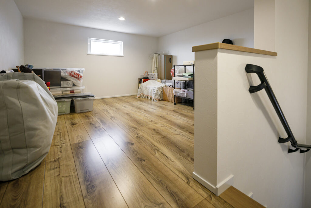 小屋裏の収納スペースには、季節のものなど普段使用しないものを収納。家の中ですっきり生活できます。