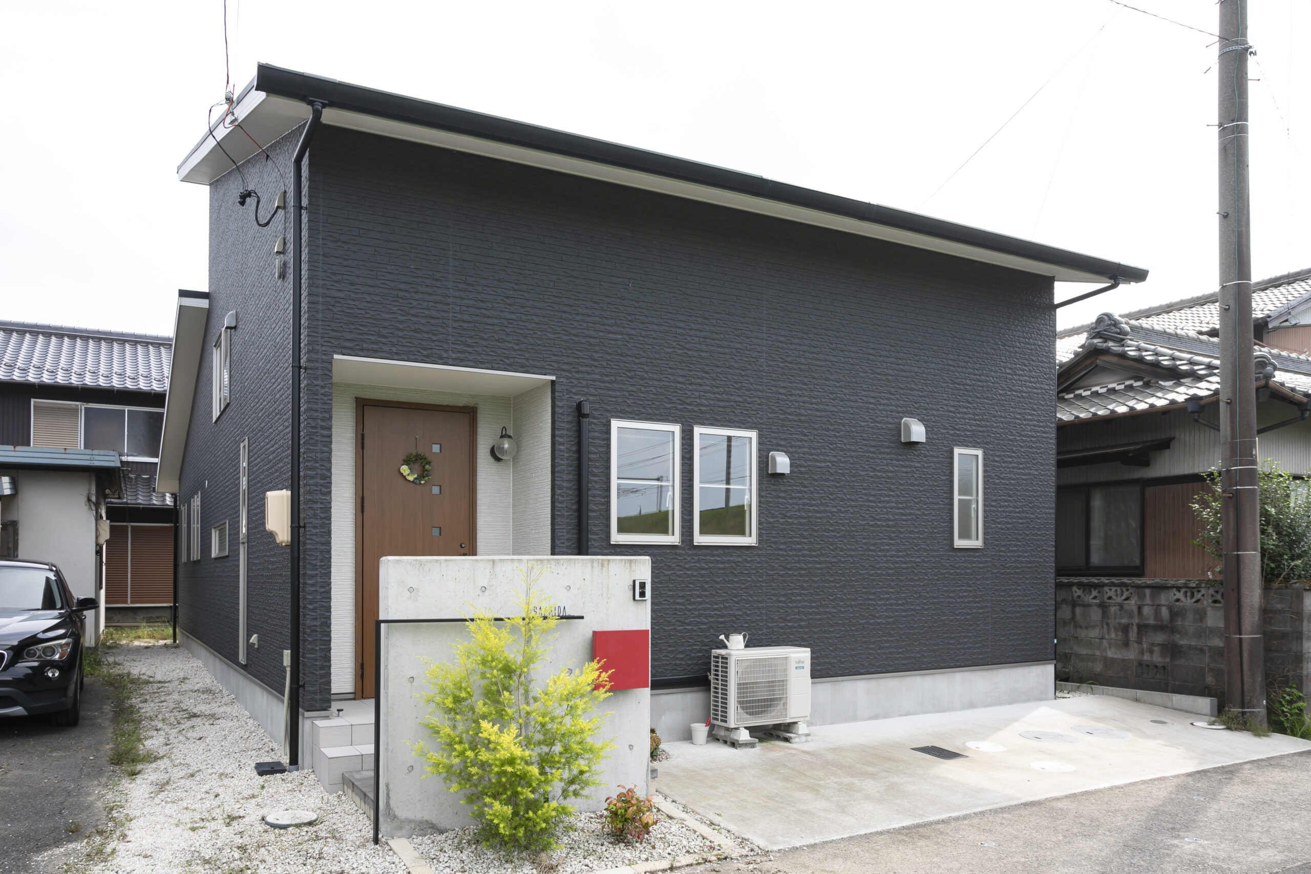 漆黒の外壁に映える、赤いポストがアクセントの外観。シンプルで無骨な印象に、鮮やかな赤が遊び心をプラスしてくれています。