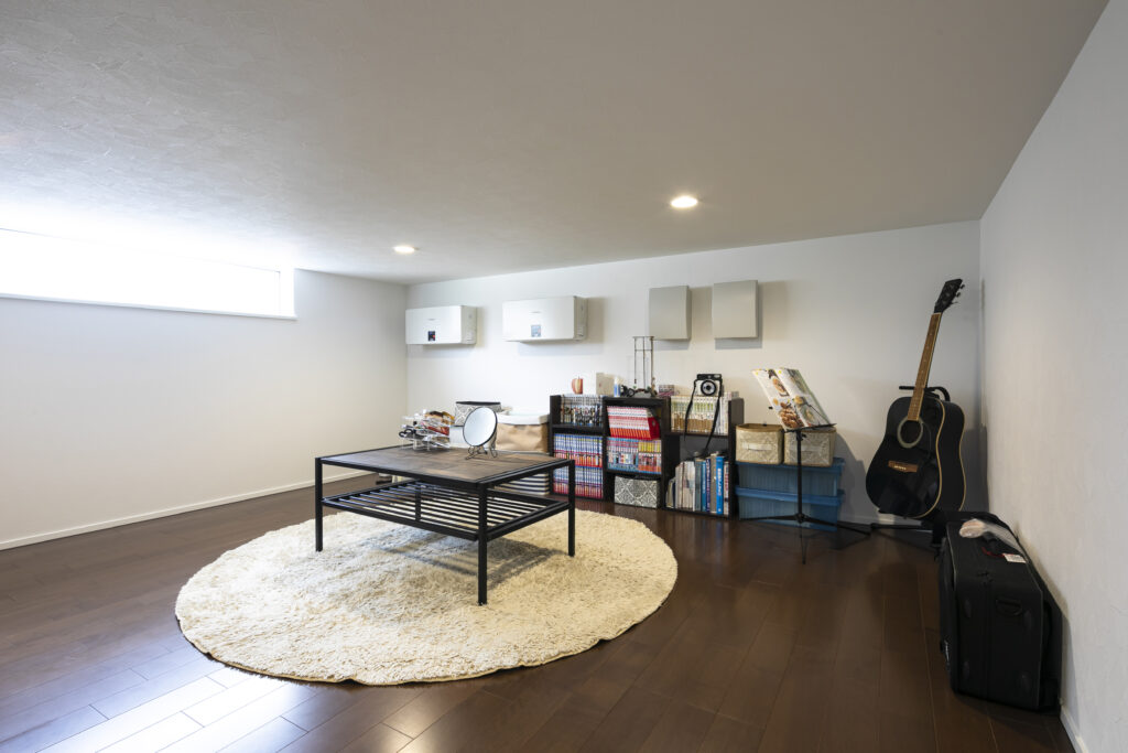 リビング下にある8帖の空間は、大容量の収納場所として。物が少ないうちは、ちょっとした寛ぎ空間としても大活躍!