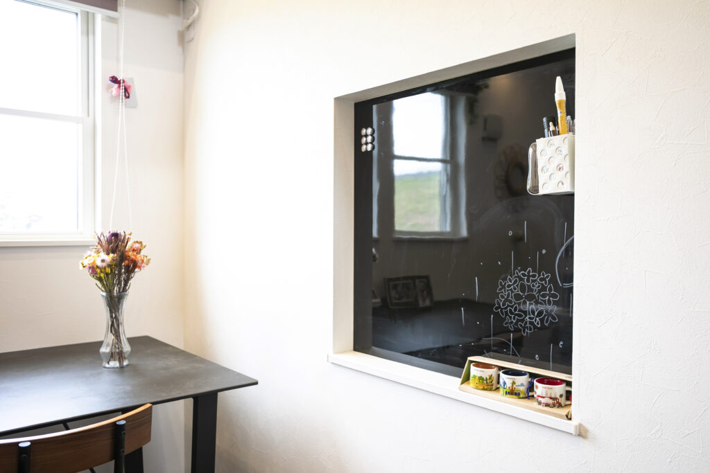 LDKの壁に設けたブラックボードは、家族の情報交換として大活躍。