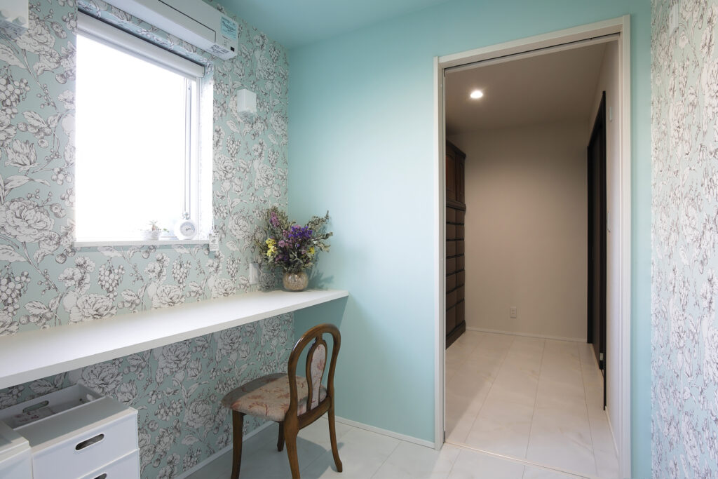客間として使用するようにあえてリビングを離れた場所に。来客時や落ち着いた時間を過ごしたい時にストレスなくいられる空間です。