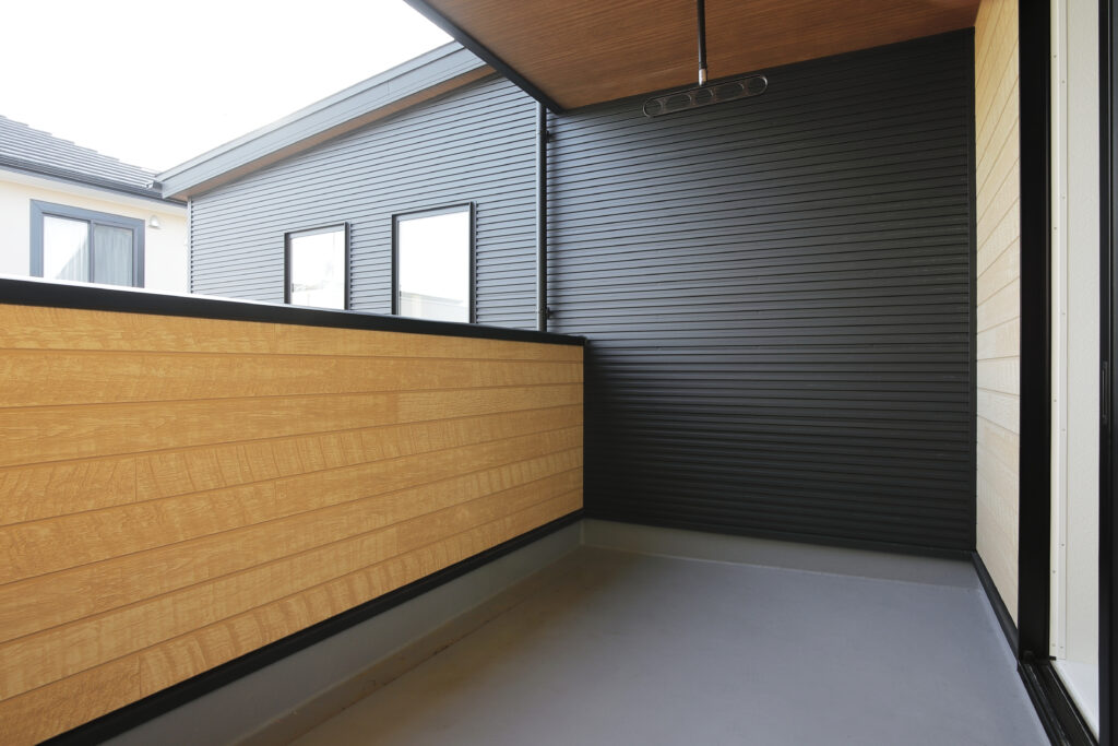 ゆったり広々したバルコニーでは沢山の洗濯物を干すことができ、大きな屋根が雨の侵入を防ぐので急な雨でも慌てずに済みます。