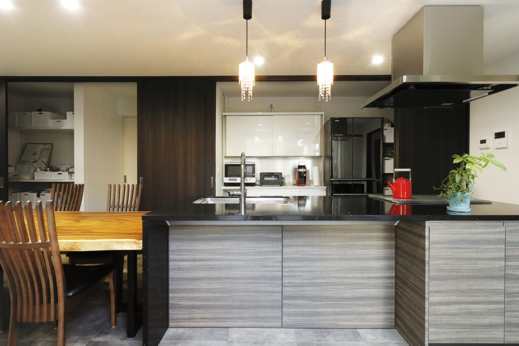 デザイン重視でしたね。天板がキラキラと煌くジュエルブラックのキッチン、床材などの素材の質感、色にも徹底的にこだわりました。