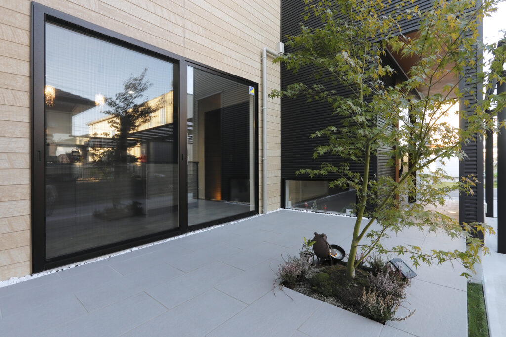 中庭にはシンボルツリーを!リビングダイニングからもツリー越しに、玄関ポーチからの人の気配が確認でき防犯上も安心です。