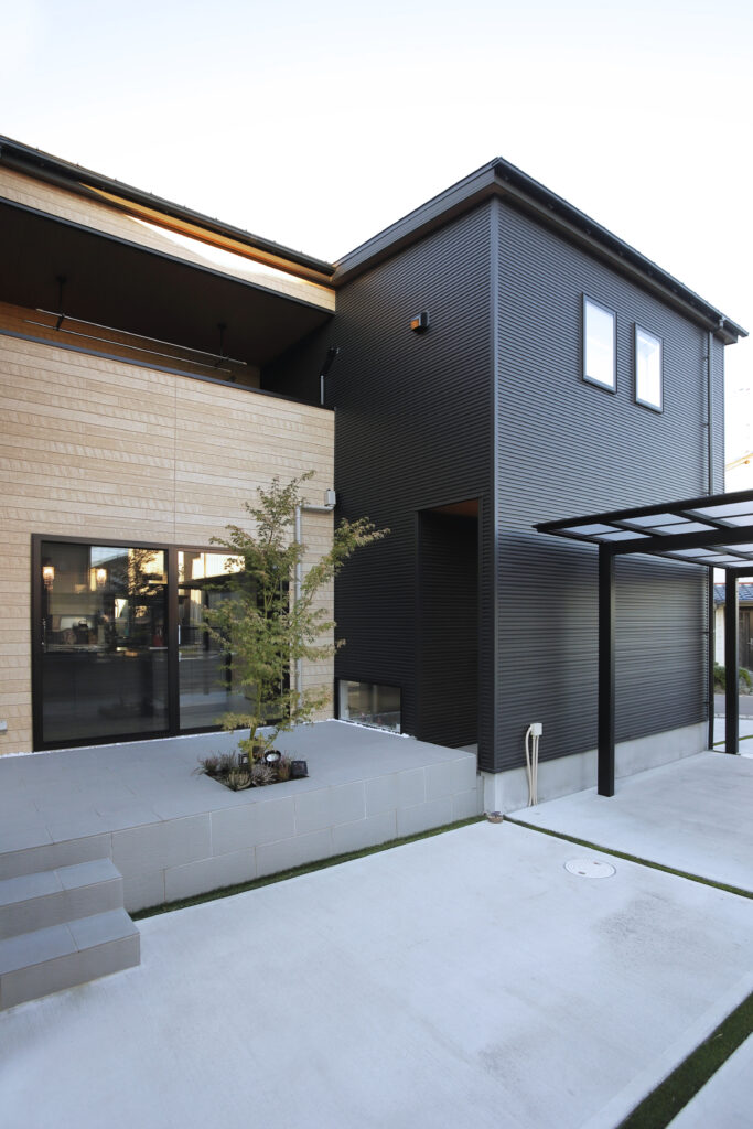 外壁に黒のガルバリウムを使用して、洗練されたモダンでお洒落な外観。