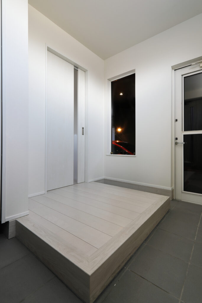 段差部分がすっきりしているので靴の脱ぎ履きがしやすいだけでなく、空間全体を広く見せてくれる設計。