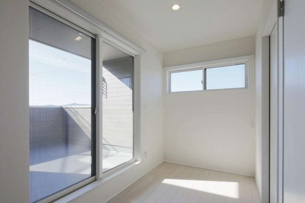 大きなバルコニーに繋がるホールは、日向ぼっこやお子さまの遊び場にも◎雨の日は物干し場として活用出来ます。