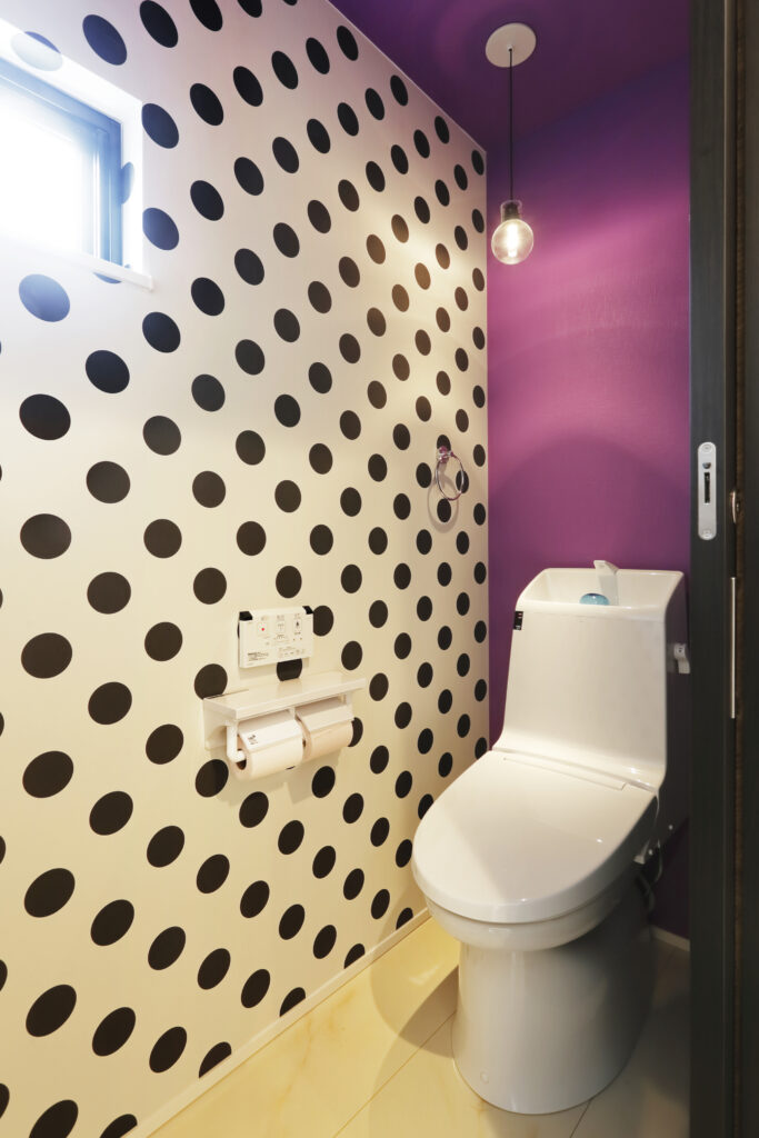 トイレのインテリアにもお施主様のこだわりがうかがえます。来客みんなが驚くほどインパクト大!とのこと。