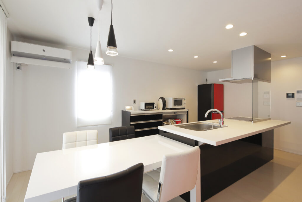家族の会話も弾むアイランドキッチン。スタイリッシュなイメージに仕上がりました。
