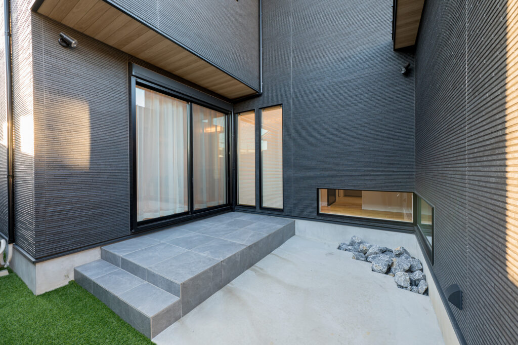 中庭を中心に外から見えないプライベート空間をつくり、キッチンやリビング、玄関の地窓からも中庭が見える“つながり”を大切にした間取りにこだわりました。