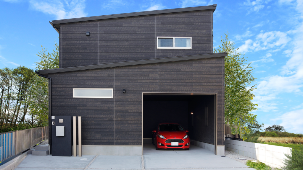 インナーガレージから趣味の車が鑑賞できる家